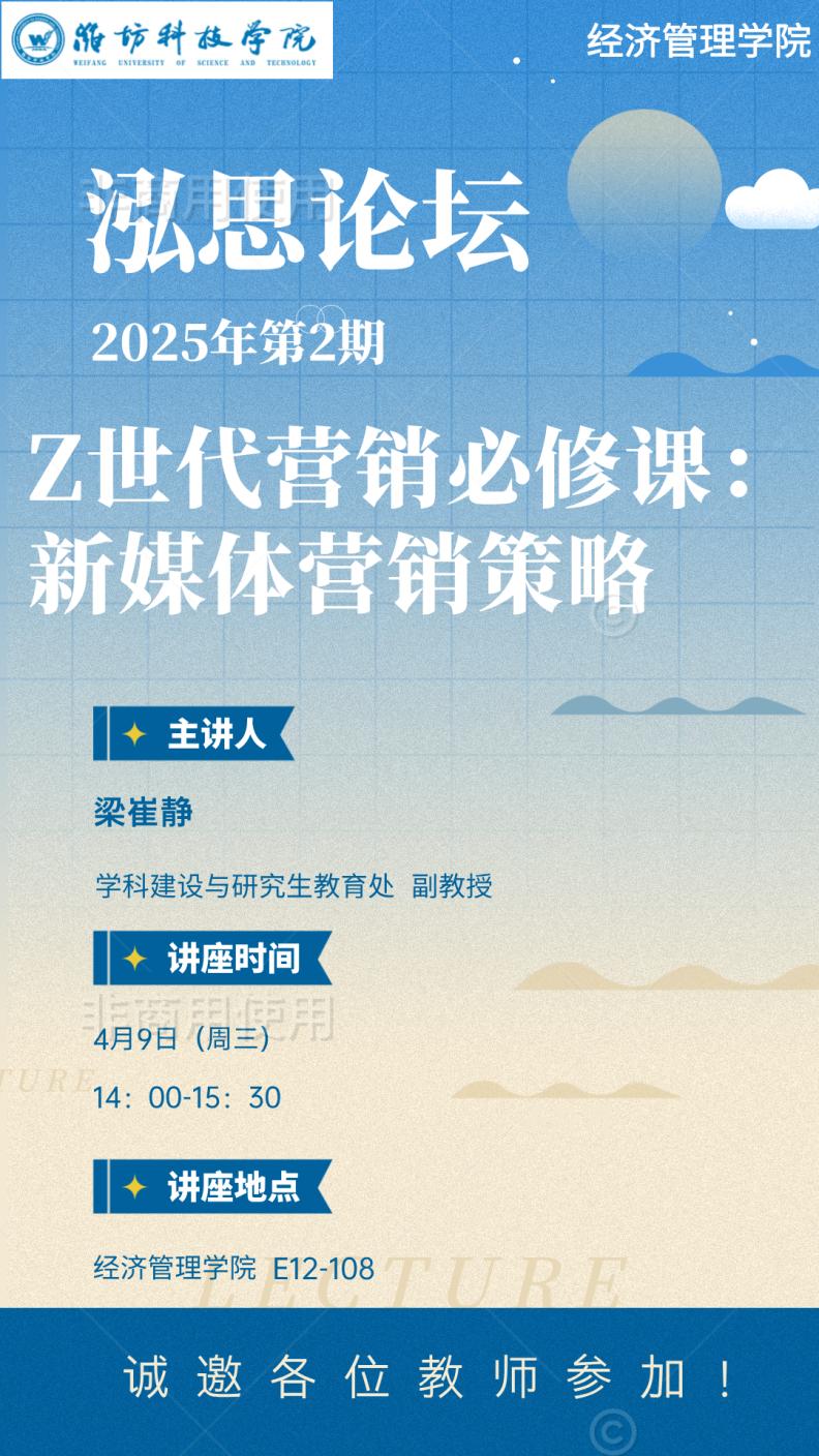 上一条:讲座通知 | 2025年第3期“泓思论坛”——课程思政的实践与思考 下一条:讲座预告 | 2025年第1期“泓思论坛”预告——云端赋能·智启科研——2025国自然课题申报指导“云教研”活动