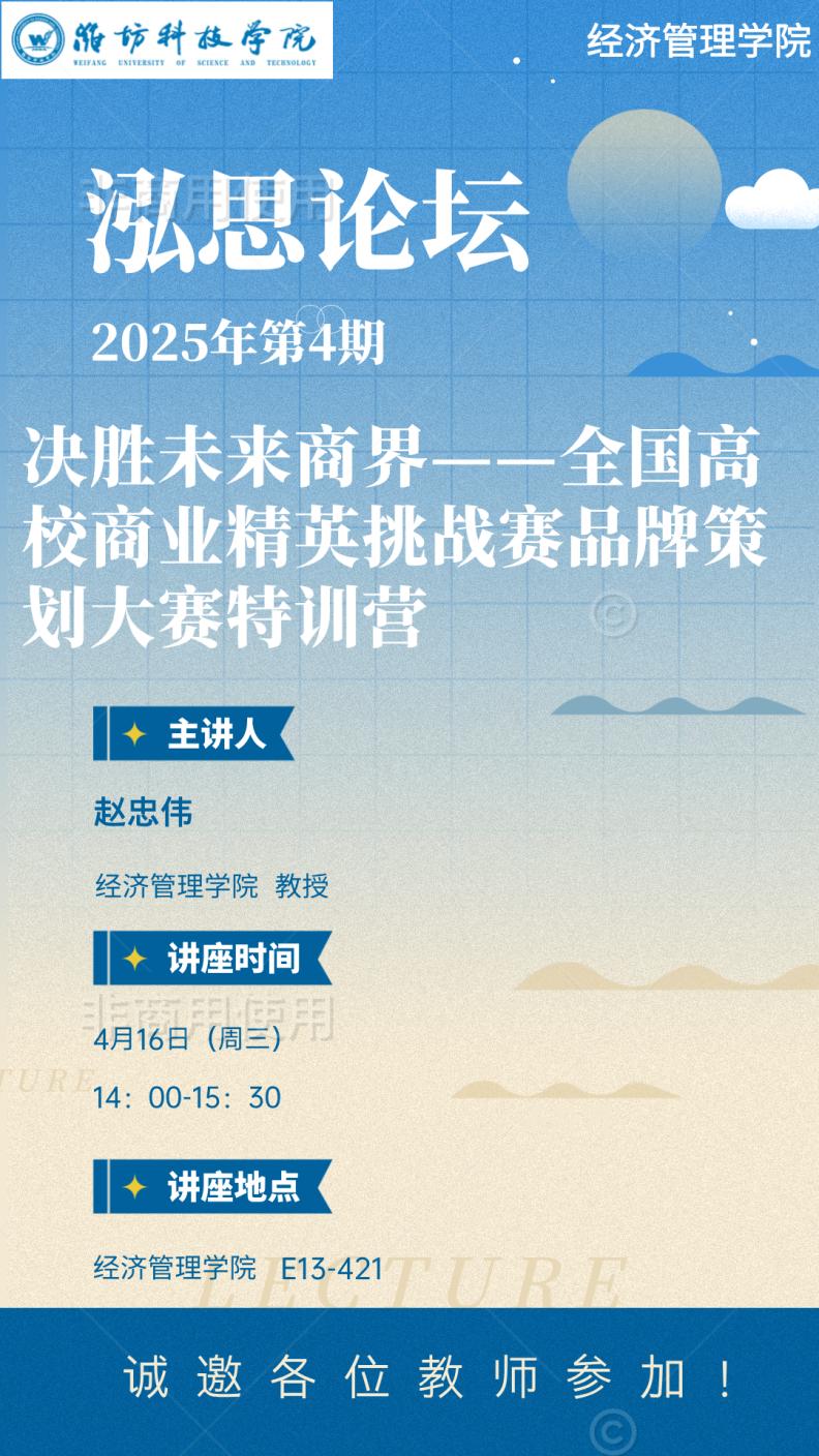 上一条:讲座通知 | 2025年第5期“泓思论坛”——现代管理技术的军事溯源与企业实践 下一条:讲座通知 | 2025年第3期“泓思论坛”——课程思政的实践与思考