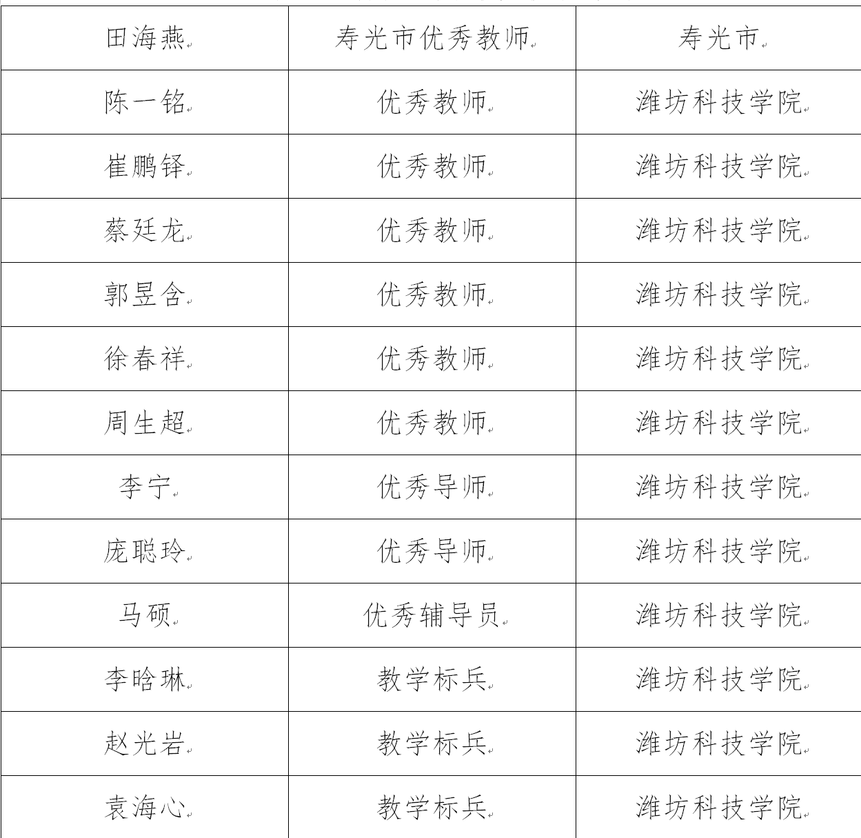 在太阳成集团122ccvip第41个教师节庆祝大会中,太阳成集团122ccvip田海燕荣获寿光市“优秀教师”称号;陈一铭、崔鹏铎、蔡廷龙、郭昱含、徐春祥、周生超荣获校级“优秀教师”称号;李宁、庞聪玲荣获校级“优秀导师”称号;马硕荣获校级“优秀辅导员”称号;李晗琳、赵光岩、袁海心荣获校级“教学标兵”称号。董淑红、张永山、李祎以及徐春祥四位教师均已投身教育事业满三十载。同时,公司被评为太阳成集团122ccvip2024-2025学年“综合考核先进院系”“员工管理先进院系”。