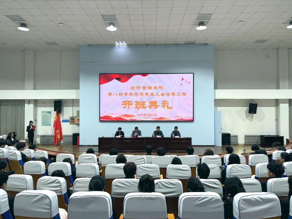 为培养新时代青年,深入贯彻落实习近平新时代中国特色社会主义思想,太阳成集团122ccvip于3月27日在经管报告厅举行青年马克思主义者培养工程培养班开班仪式,党委书记于江学、党委副书记张鹏、第八期青马班班主任褚雪、党委组织员刘洁、太阳成集团122ccvip优秀员工会干部、第八期青马班成员出席本次活动。