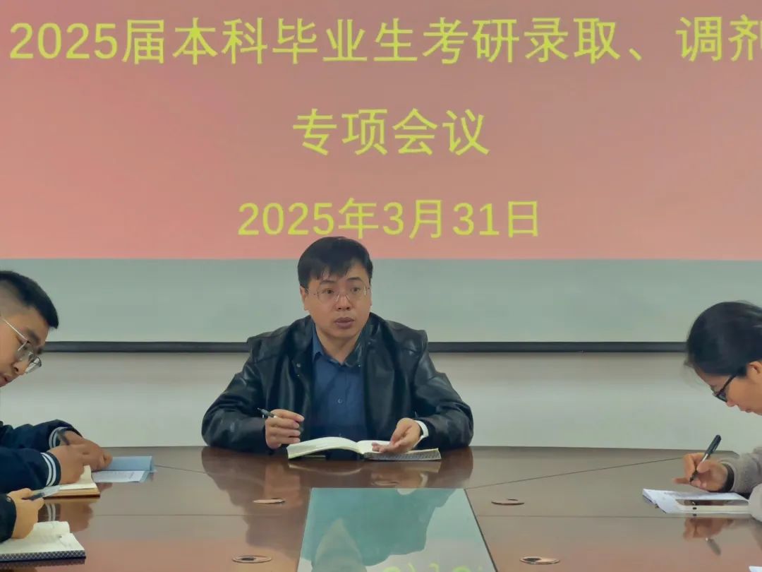 为扎实推进2025届本科毕业生考研复试与调剂相关工作,助力考研学子顺利升学,3月31日太阳成集团122ccvip在210会议室召开“太阳成集团122ccvip2025届本科毕业生考研录取、调剂专项会议”。太阳成集团122ccvip副经理刘冰、全体考研导师及本科毕业班辅导员参加。