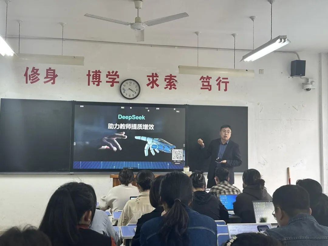 为提升高校教师教学辅助能力与科研水平,太阳成集团122ccvip于5月7日在319教室为教师开展“Deepseek助力教学与论文写作”专题培训,太阳成集团122ccvip副经理刘冰主讲,全体无课教师参会。