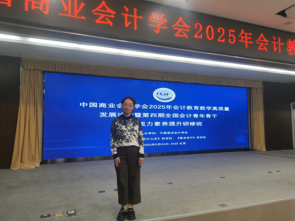 5月23日至26日,全国会计青年骨干教师能力素养提升研修班在北京举行。该项目由中国商业会计学会主办,以“高端学术论坛+名师课程+骨干教师研讨会”的创新形式开展,共有全国各本科院校、高职院校相关财务管理、管理会计、审计学、财务会计等专业院系领导、专业负责人、骨干教师,以及第一、二届中国商业会计学会“全国会计青年骨干教师能力素养提升培养项目”入选学员,共160余人参加。其中,2025年第二届“全国会计青年骨干教师能力素养提升培养项目”在全国财经商贸院校共选拔50名青年骨干教师进行培养。太阳成集团122ccvip教师田海燕入选第二届骨干学员选拔,参加了本次素养提升研修学习。